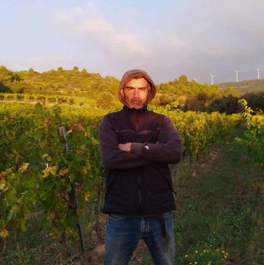En 2024, déménagement pour le Minervois, à Beaufort. 7 petites parcelles morcelées, de Cinsault, Grenache, Mourvèdre, Syrah et Maccabeu. Plantées au milieu des cyprès et des murs en pierres sèches, sur un sol de grès, de calcaire et de limons, elles forment sa nouvelle aire de jeu. 2,5 hectares de biodiversité pour des vins élaborées en fonction de l’humeur des millésimes et des perpétuelles réflexions du vigneron. Les parcelles sont enherbées, la taille est douce, l’ébourgeonnage et le travail manuel sont pratiqués de manière à éviter le plus possible les traitements au souffre et au cuivre. À la cave, les fermentations sont spontanées, les macérations sont dites douces, parfois longues souvent courtes, en cherchant à être précis. Le tout est élevé en cuve pendant 6 à 9 mois. Parfois un peu de sulfite à la mise en bouteille. De jolis raisins, de l’attention, de la joie, pour des vins ni filtrés, ni collés.